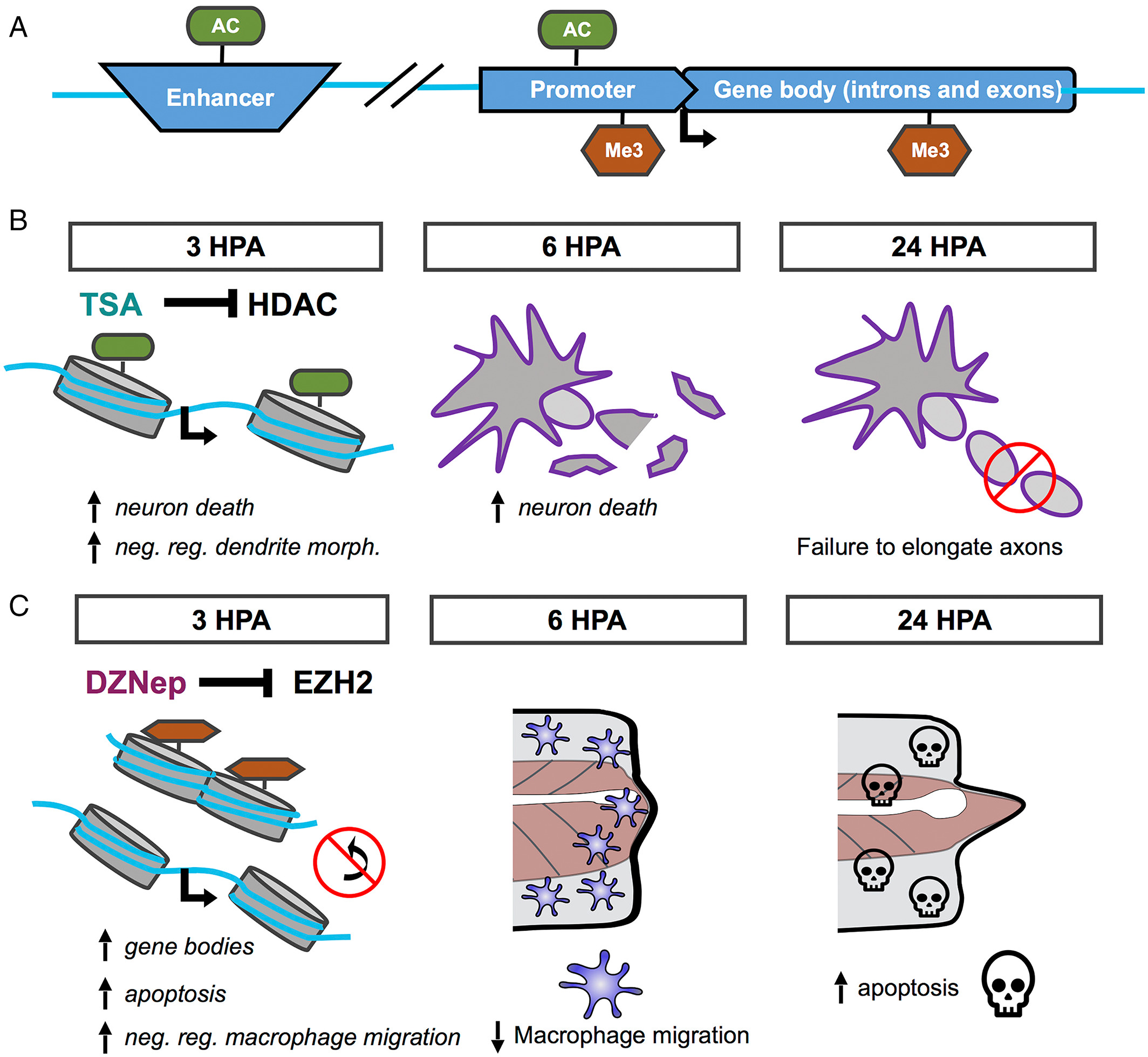 Model for potential roles of HDAC and EZH2 activity in regeneration. (A) Gene model with proposed genomic features that may be regulated by acetylation or H3K27me3. (B) Model for the early role of HDAC activity in regeneration. (C) Model for the early role of EZH2 activity in regeneration. [Color figure can be viewed at wileyonlinelibrary.com] |