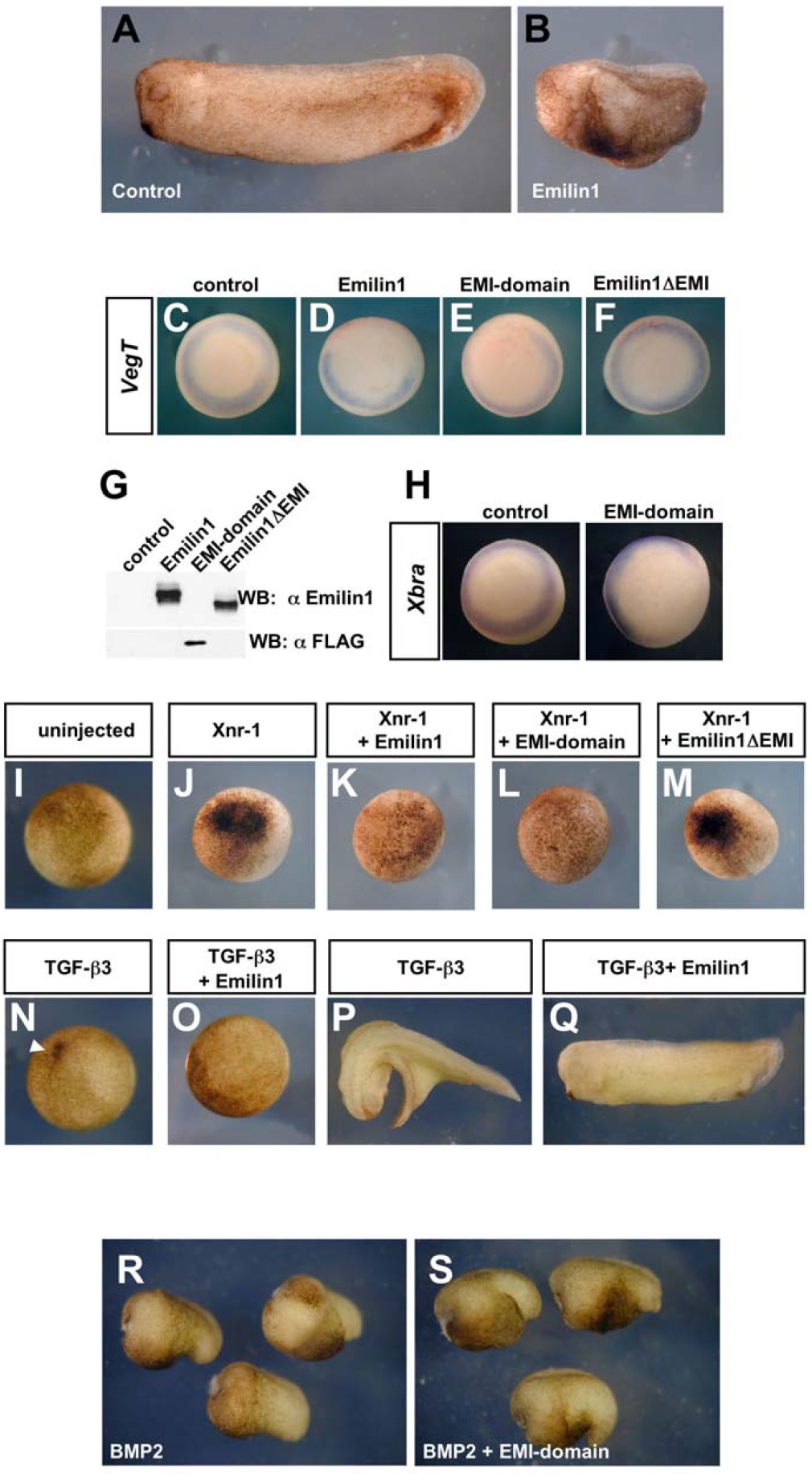 (C�F) Emilin1 antagonizes endogenous TGF-β ligands in Xenopus embryos, through its