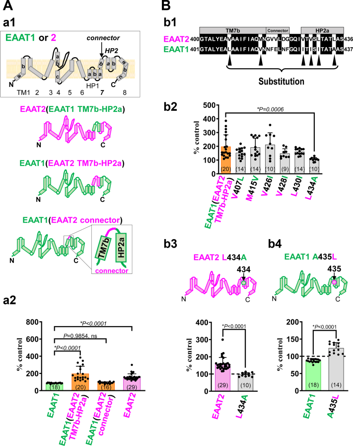 Leucine 434 is essential for docosahexaenoic acid-induced augmentation of L-glutamate transporter current.