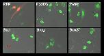 Fig. 1. Immunofluorescence testing of serum. The serum from mouse M3 immunized with FoxD3-Flag, Twist-Flag, Six1-Flag, Slug-Flag and Sox3-Flag produced in Hek293T cells was tested by immunofluorescence on XTC cells transfected with each of the target or RFP-Flag as a negative control. A secondary Alexa 488-conjugated anti-mouse antibody was used to visualize the mouse primary antibodies (green). Notice the green nuclei in each of the transfections, with some non-transfected cells lacking signal.