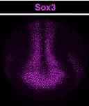 sox3 (SRY-box 3) gene expression in Xenopus laevis embryo, neurula stage NF 17-18, assayed via immunohostochemistry, anterior view, dorsal up.