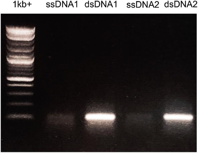 ssDNA and dsDNA templates visualized using the intercalating reagent Ethidium Bromide