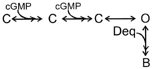 Voltage-dependent gating and block of the cyclic-GMP-dependent current in bovine rod outer segments.