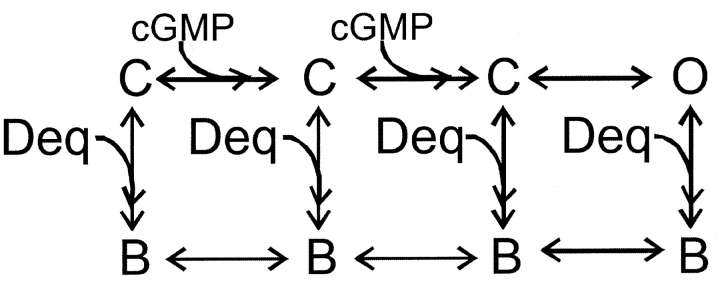 Opening mechanism of a cyclic nucleotide-gated channel based on analysis of single channels locked in each liganded state.