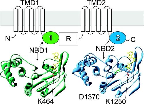 Aleksandrov, Differential interactions of nucleotides at the two nucleotide binding domains of the cystic fibrosis transmembrane conductance regulator. 2001, Pubmed