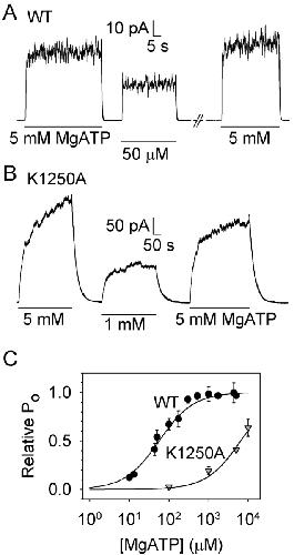 Ramjeesingh, Walker mutations reveal loose relationship between catalytic and channel-gating activities of purified CFTR (cystic fibrosis transmembrane conductance regulator). 1999, Pubmed