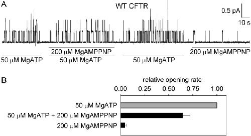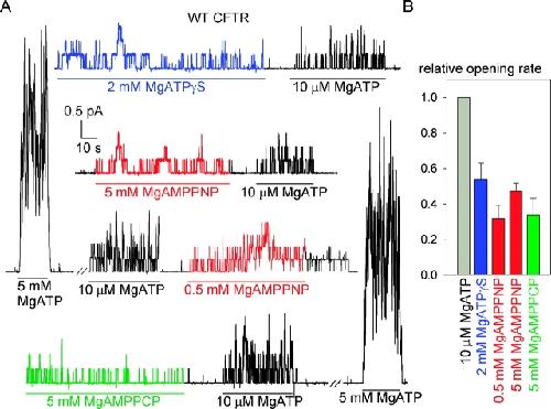 Carson, 5'-Adenylylimidodiphosphate does not activate CFTR chloride channels in cell-free patches of membrane. 1993, Pubmed