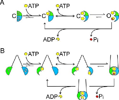 Moody, Cooperative, ATP-dependent association of the nucleotide binding cassettes during the catalytic cycle of ATP-binding cassette transporters. 2002, Pubmed