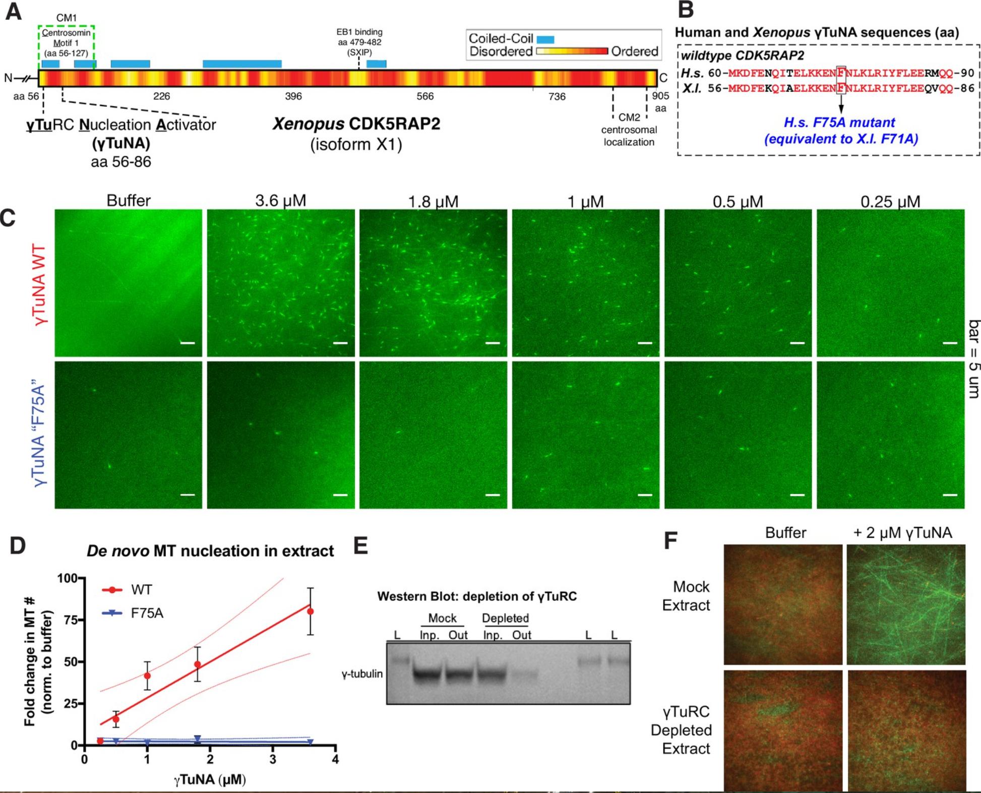 Figure 1. Cdk5rap2’s γTuNA domain increases MT nucleation in Xenopus egg extract and requires the universal MT template, the γ-tubulin ring complex (γTuRC).