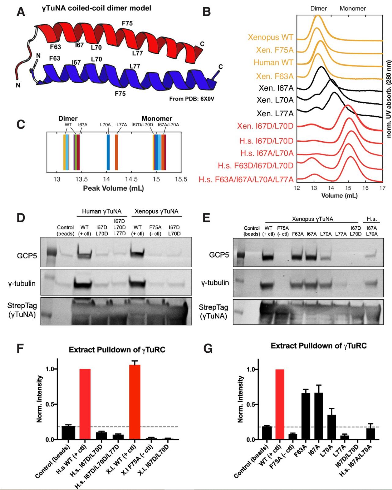 Figure 3. γTuNA requires both dimerization and the F75 residue to bind γTuRC in extract.