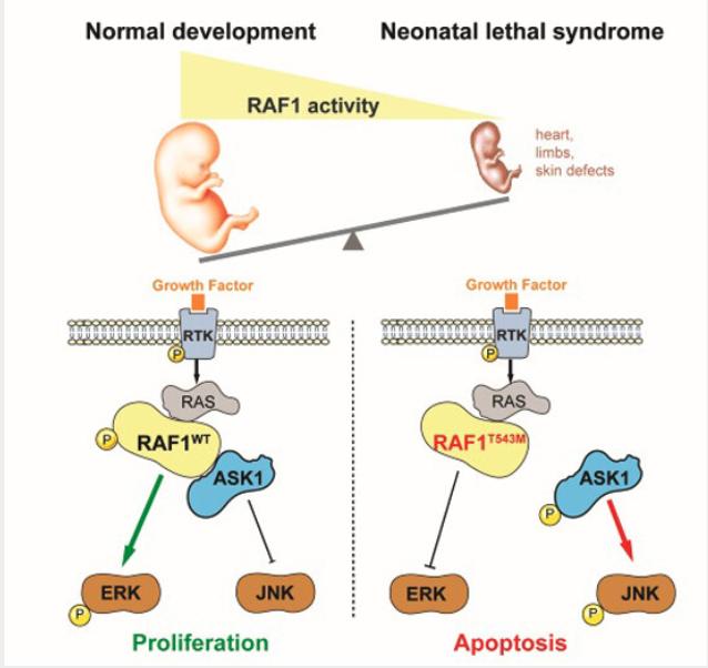 RAF1 deficiency causes a lethal syndrome that underscores RTK signaling during embryogenesis.