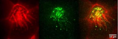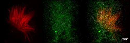 Movie S17. IFT57 transport in control Xenopus embryos. Two-channel high-speed confocal imaging shows intraciliary IFT43 trafficking in Xenopus epidermal MCCs. |