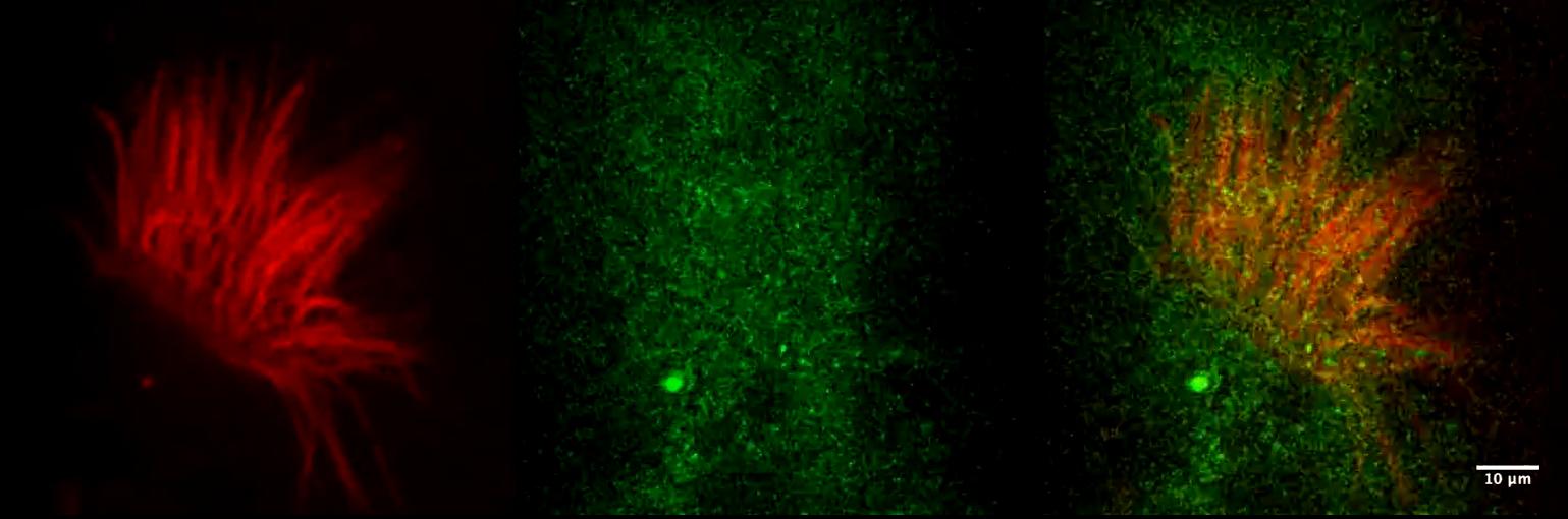 Movie S15. IFT43 transport in control Xenopus embryos. Two-channel high-speed confocal imaging shows intraciliary IFT43 trafficking in Xenopus epidermal MCCs. |
