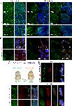 Fig. S9. TRAF7 reduction impairs CSF flow and affects ependymal cilia. A. WT or TRAF-morpholino depleted Stage 45 tadpoles are embedded in 1% low-melt agarose with the dorsal side of the animal facing the OCT beam. 2D and 3D images are taken. Schematic representation of particle tracking enables compartmental CSF flow speed measurements. a Mid-sagittal plane in vivo OCT imaging of a stage 46 tadpole outlining brain structures and ventricular spaces. B. CSF polarity map based on temporally color-coded frames 11000 at the mid-sagittal plane delineates particle trajectories of 5 discrete flow-fields (FFs) (labeled 15). FF1: telencephalic, FF2: diencephalic, FF3: mesencephalic, FF4: anterior rhombencephalic, FF5: posterior 12 rhombencephalic (red: clockwise, blue: counterclockwise). CSF: cerebrospinal fluid; a: anterior, p: posterior, d: dorsal, v: ventral.B,C. Reduction of TRAF7 in vivo affects cilia-driven CSF flow. Median compartmental flow speed. CRISPR knockdown of TRAF7 significantly impacts the flow of CSF in the brain as compared to WT or Cas9 injected embryos. D,E. Reduction of TRAF7 in vivo affects ciliogenesis in the telencephalon, diencephalon and rhombencephalon. Ependymal cilia, which drive the CSF flow, are significantly abrogated in TRAF7 morpholino knockdown embryos as compared to WT embryos. Cilia are stained for Arl13b (green) and -tubulin (red) |