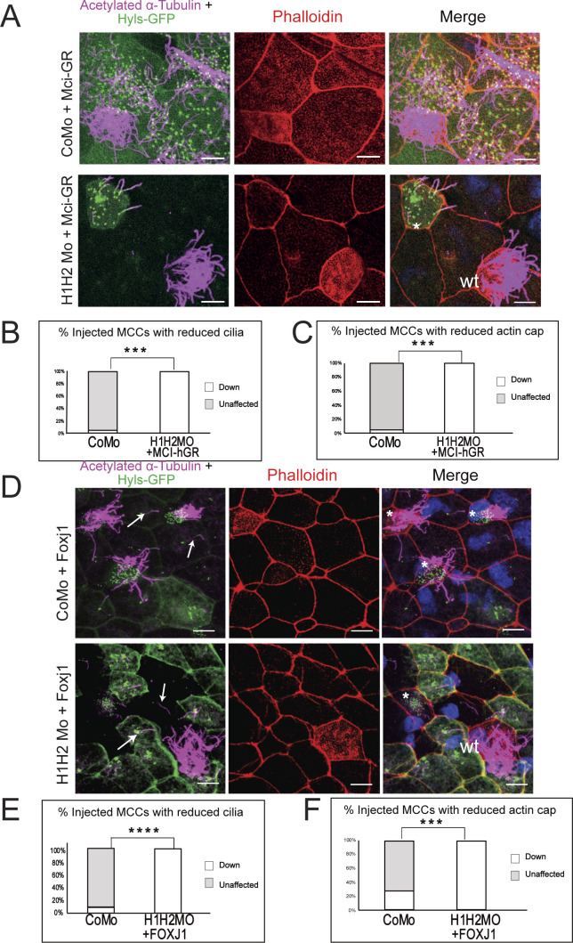 Rescue of ciliogenic phenotype in H1 Mo embryos with hPHF8.