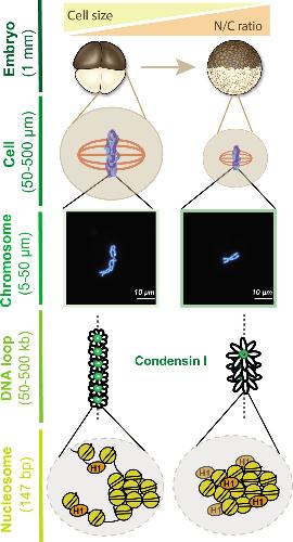 Mitotic chromosomes scale to nuclear-cytoplasmic ratio and cell size in Xenopus.