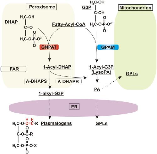 Honsho, Distinct Functions of Acyl/Alkyl Dihydroxyacetonephosphate Reductase in Peroxisomes and Endoplasmic Reticulum. 2020, Pubmed