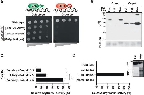 Bratschi, Glycerol-3-phosphate acyltransferases gat1p and gat2p are microsomal phosphoproteins with differential contributions to polarized cell growth. 2009, Pubmed