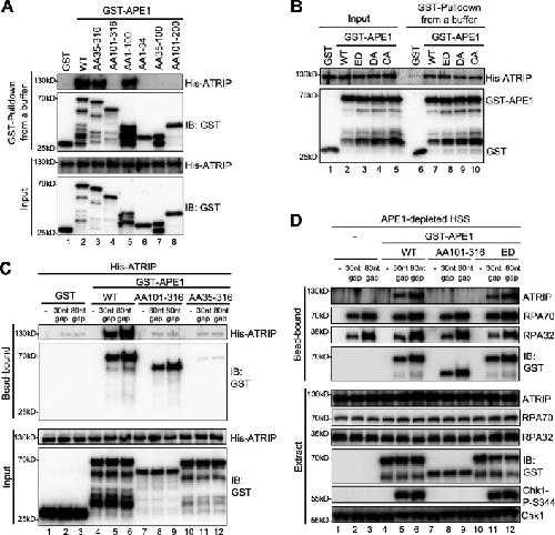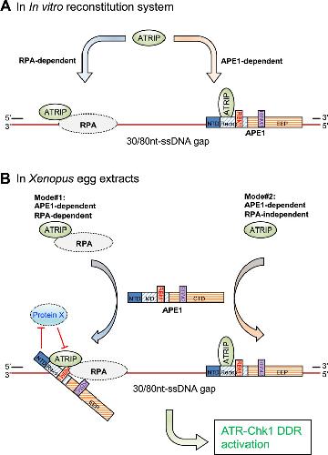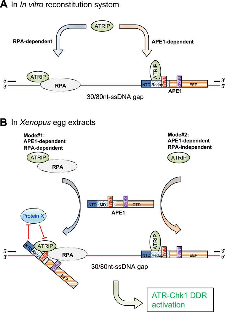 APE1 recruits ATRIP to ssDNA in an RPA-dependent and -independent manner to promote the ATR DNA damage response.