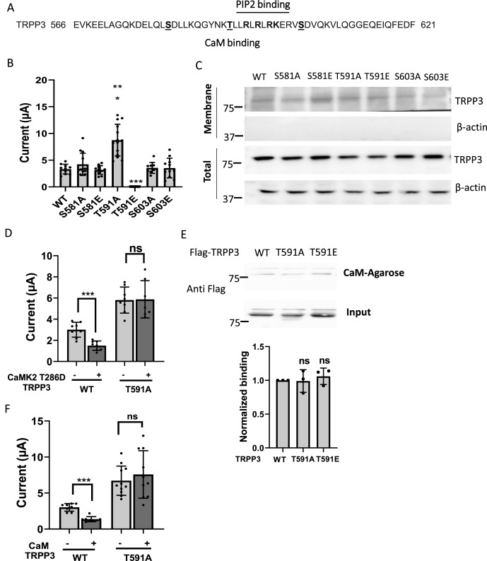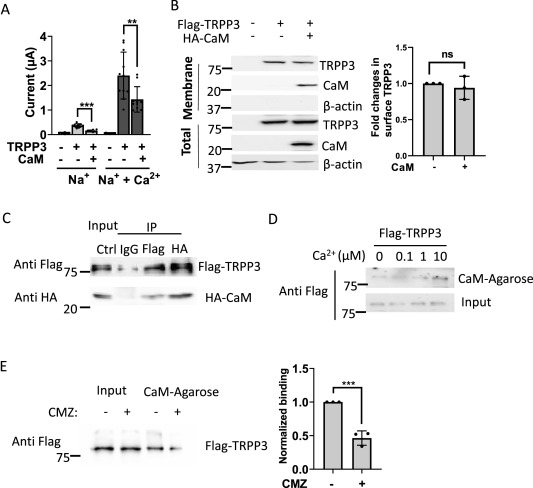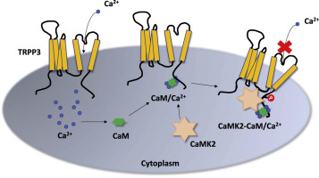 Inhibition of TRPP3 by calmodulin through Ca2+/calmodulin-dependent protein kinase II.