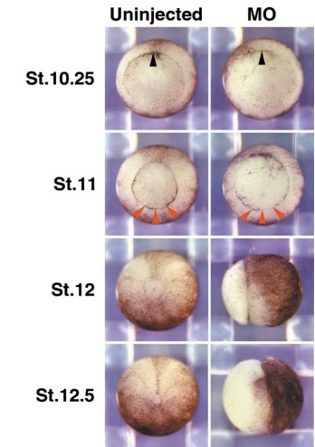 arrowheads) at stage 10.25. By mid-gastrulation (stage 11), blastopore