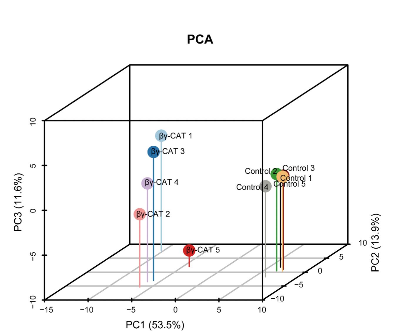 Supplementary Figure S3 PCA score plot from untargeted metabolomics of supernatants from βγ-CAT-treated and PBS-treated (control) BMDF-EVs