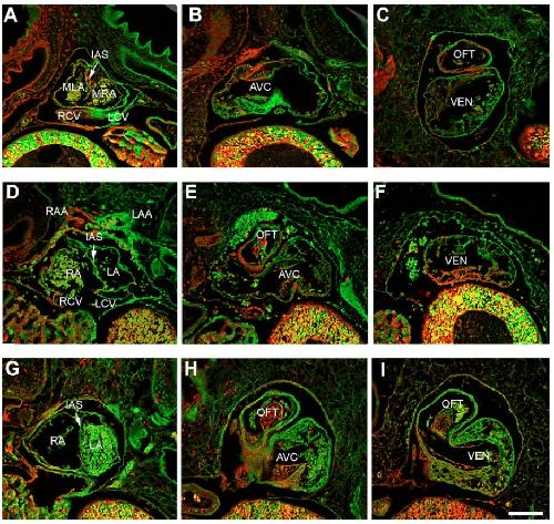 expression. Three different hearts (A-C, D-F, G-I) are