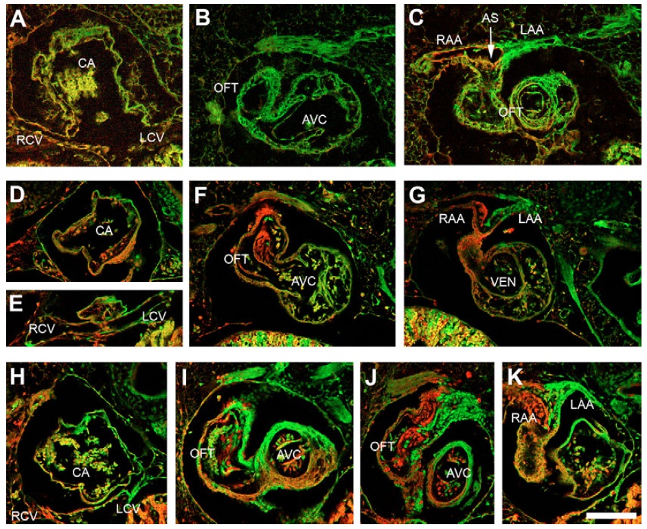 hearts (A-C, D-G, H-K) show the right cardinal vein