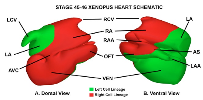Left-right lineage analysis of the embryonic Xenopus heart reveals a novel framework linking congenital cardiac defects and laterality disease.