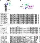 Fig 6. Structural modeling of interactions between SMOC-1 and LON-2, and between SMOC-1 and DBL-1. (A) Predicted structure of a complex formed between LON-2 and SMOC-1. The EC domain of SMOC-1 is predicted to interact with LON-2. (B) Predicted structure of a complex formed between SMOC-1 and a homodimer of the DBL-1 mature domain. Both the EC and TY domains of SMOC-1 are predicted to interact with DBL-1. (C) Multiple sequence alignment of the TY domains of SMOC-1 homologs using Clustal Omega (CLUSTAL O(1.2.4)). Red * marks the residues at the interface between SMOC-1 and DBL-1, as identified via ColabFold. Green colored boxes indicate residues (Y72, Y90, Y95, W97) mutated to generate the SMOC-1(M3) mutation. (D) Multiple sequence alignment of the EC domains of SMOC-1 homologs using Clustal Omega (CLUSTAL O(1.2.4)). Red * marks the residues at the interface between SMOC-1 and DBL-1, and blue * marks the residues at the interface between SMOC-1 and LON-2, as identified via ColabFold. In both C and D, dark shaded residues are identical, while light shaded residues are conserved, among all or most of the homologs. Blue colored boxes indicate residues (S152, S156, M160) mutated to generate the SMOC-1(M1) mutation, while red boxes indicate residues (F253, L257) mutated to generate the SMOC-1(M2) mutation. EC, extracellular calcium-binding; SMOC, secreted modular calcium-binding protein; TY, thyroglobulin type-1. https://doi.org/10.1371/journal.pbio.3002272.g006 |