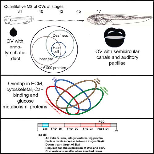 Time-resolved quantitative proteomic analysis of the developing Xenopus otic vesicle reveals putative congenital hearing loss candidates.