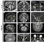 Supplemental Figure 2. Cerebral MRI of Patients 1 and 2. A) Sagittal T1 weighted MRI images showing cerebellar atrophy involving specifically the superior part of the cerebellar vermis (arrow). The pituitary gland is normal both for the anterior and the posterior part. B) Coronal T2 weighted images showing diffuse widened subarachnoid spaces suggesting mild cerebral atrophy (black asterisks). C) Coronal T1 weighted imaging showing loop of the cervical segment of the right internal carotid artery, which is an unusual finding in young adults (arrow). D) Sagittal T1-weighted images showing cerebellar atrophy involving specifically the superior part of the cerebellar vermis (arrow). The pituitary gland is normal both for the anterior and the posterior part (arrowhead). E) Coronal T2 weighted images showing diffuse widened subarachnoid spaces suggesting mild cerebral atrophy (asterisks). F) 3D Time of Flight images showing the dolichoectasia of the basilar artery (arrow). G) Sagittal T2 weighted images showing the slight brainstem compression (arrow). H) Axial Fluid Attenuated Inversion Recovery T2 weighted images showing the dolichoectasic basilar trunk in a mid- pons cleft (arrow). I) Axial T2 weighted images showing stretched enlarged perivascular spaces in the mid-pons (arrow). J) Axial T2 weighted images showing the atrophic superior vermis (arrow). Coronal (K) and axial (L) T2 weighted images showing bilaterally enlarged perioptic fluid space in the intraconic and pre-bulbar tracts (arrows). |
