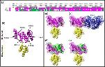 Figure 5 Y2H analysis of Six1 (SD + HD) bait fragments (Six1.L, residues 1–194), harboring clinical and designer substitutions within the SD, with prey fragments of Eya1 (Eya1.L, residues 316–587), Tle4 (Tle4.S, residues 1–138), and Drosophila (D)-Sobp (Sobp-PA, residues 210–354). Interactions were assessed via mating of transformed haploid yeast strains (Y2H Gold “bait” + Y187 “prey”) and assessing diploid cell growth across a gradient of 3-AT concentrations (0.1–10 mM) on media lacking His, Ade, Leu, and Trp. Semiquantitative interaction scores are color-coded as wild-type level (magenta), affected interaction (from light to medium green), or no detectable interaction (dark green). They were inferred from the maximum concentration of 3-AT that supported growth, relative to wild-type controls, for each interaction pair. The approximate positions of the six SD helices are indicated in gray. HD, homeodomain; SD, Six domain; Y2H, yeast two-hybrid. |