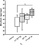 Fig. 2. Effect of T4 on st. 57 tadpoleheart. Box length indicates the interquartile range or IQR (25th to 75th percentile), and the horizontal line shows the median. The whiskers show distance 1.5 times IQR. This experiment was carried out using 6 hearts. *Significantly greater (P < 0.05) than the corresponding control value.