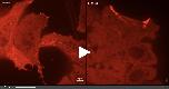 still from Movie 5. Focal adhesion dynamics in Trio morphant (right) and control (left) NC cells expressing Paxillin-mCherry (red). |