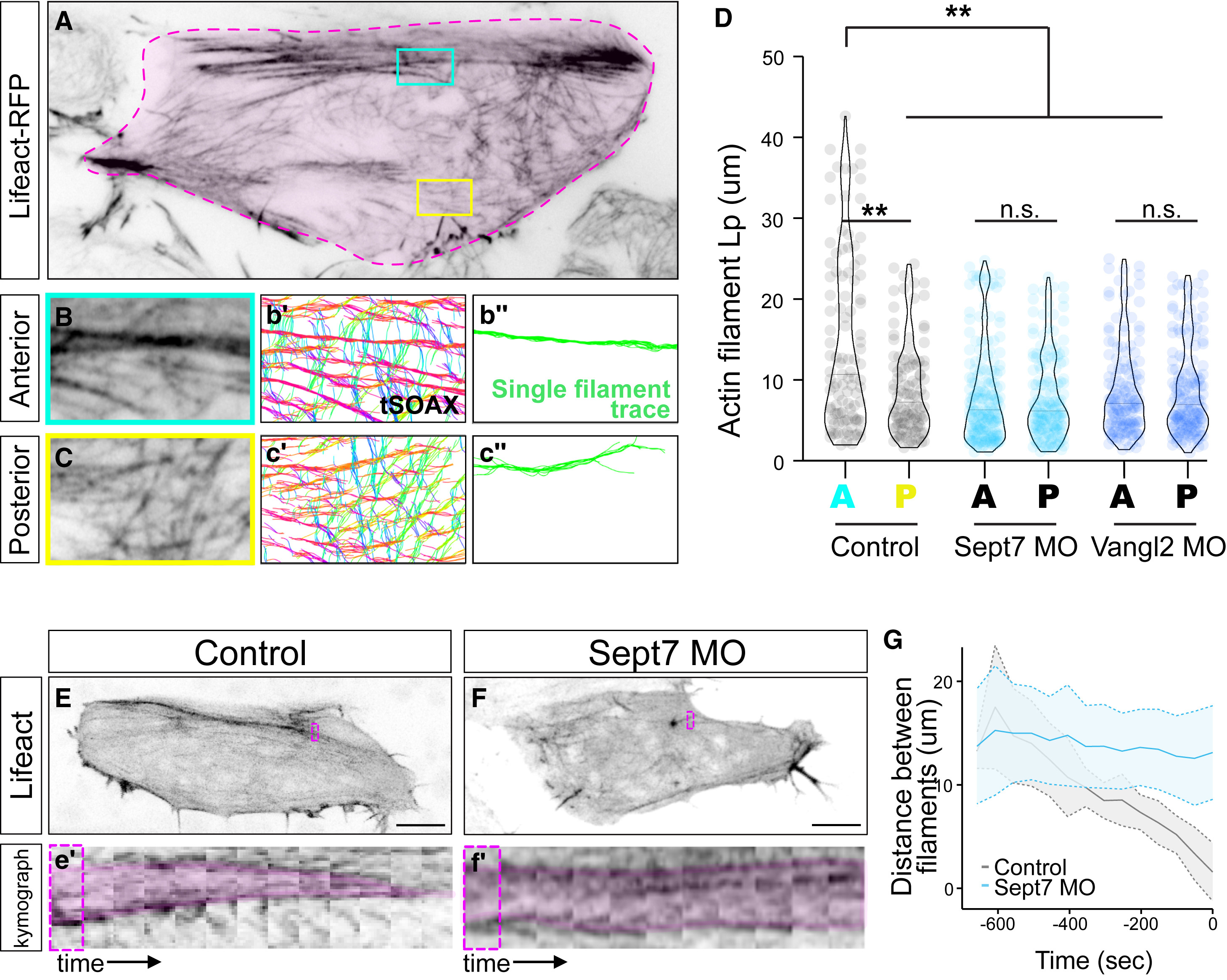 PCP and Septins govern the polarized organization of the actin cytoskeleton during convergent extension.