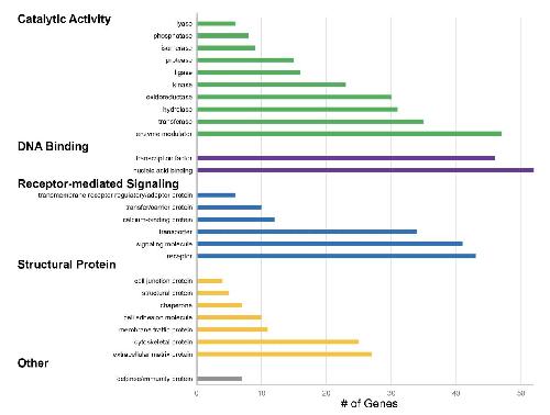and receptors were the most enriched sub-categories in our differential expression dataset. Graphing the data