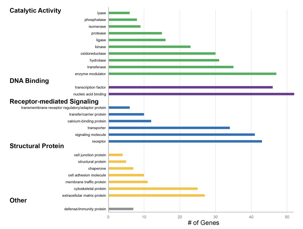 transcripts are categorized based on GO protein classes. Gene number per GO class is indicated on the Xaxis. |