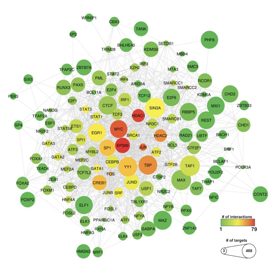 Network analysis of the 126 transcription factors identified in the ENCODE database that could regulate