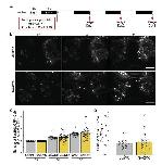BRCA1 and ELK-1 mediate visual experience–dependent effects on neural progenitor cell fate. (A) Diagram of treatment and imaging protocol. (B–H) BRCA1 mediates the effects of visual stimulation on NPC fate. (B) Representative images of tGFP+ cells collected on day 3 from animals exposed to 12 h light/12 h dark (light) or continuous dark (dark) with BRCA1 KD or control morpholinos. (Scale bar: 50 µm.) (C–H) Quantitative analysis of imaging data. (C) BRCA1 KD (B-KD) blocked the normal increase in GFP+ cells over the 3-d imaging period in animals exposed to 12 h light/12 h dark (light: gray bar vs. light blue bar) or dark (dark: black bar vs. dark blue bar) compared to control morpholino-treated animals. n = 17 to 24 animals per condition/timepoint. (D) Profile plot of data in (C) demonstrating that the effect of visual experience on tGFP+ cell number depends on BRCA1. (E and G) BRCA KD significantly increased NPCs in animals exposed to light [(E) light: gray bar vs. light blue bar] and decreased neurons [(G) light: gray bar vs. light blue bar] compared to control morpholino-treated animals. BRCA1 KD did not affect NPCs (E) or neurons (G) in animals exposed to dark (black vs. dark blue bars). (F and H) Profile plots of data in (E) and (G) demonstrating that the effect of visual experience on NPC fate depends on BRCA1 expression. (I–O) ELK-1 mediates the effects of visual stimulation on NPC fate. (I) Representative images of tGFP+ cells collected on day 3 in animals exposed to light or dark with ELK-1 KD or control morpholinos. (Scale bar: 50 µm.) (J–O) Quantitative analysis of in vivo imaging data. (J) ELK-1 KD (E-KD) blocked the normal increase in GFP+ cells in animals exposed to light (light: gray vs. light green bars) but not dark (black vs. dark green bars) compared to control morpholino-treated animals. n = 11 to 14 animals per condition/timepoint. (K) Profile plot of factorial comparison of data in (I), demonstrates that the effect of visual experience on the total number of tGFP+ cells is not dependent on ELK-1. (L) ELK-1 KD significantly increased NPCs under light conditions (gray vs. light green bars) and significantly decreased neural progenitors under dark conditions (black vs. dark green bars) compared to control morpholino-treated animals. (N) ELK-1 KD significantly decreased neurons in animals exposed to light (gray vs. light green bars) but did not significantly affect neurons in animals in dark (black vs. dark green bars) compared to control morpholino-treated animals. (M and O) Profile plots of data in (L) and (N) demonstrate that the effect of visual experience conditions on the fate of NPCs and neurons depends on ELK-1 expression. *P < 0.05, **P < 0.01, ***P < 0.001, and ****P < 0.0001; Mann–Whitney U test in (C), (E), (G), (J), (L), and (N). Two-way ANOVA analysis was used in (D), (F), (H), (K), (M), and (O). |