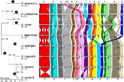 Uno, Homoeologous chromosomes of Xenopus laevis are highly conserved after whole-genome duplication. 2013, Pubmed , Xenbase
