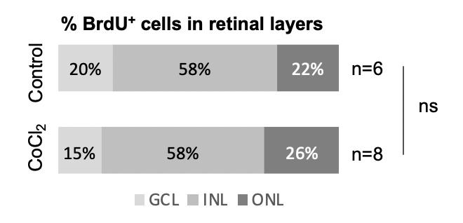 Figure S2. Absence of CMZ proliferative response following a 10 mM CoCl2 intraocular injection in