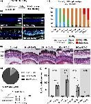 Neurogenic potential of Müller glia and CMZ cells following a 25 mM CoCl2 intraocular injection in X. laevis. (a) Outline of the pulse-chase experiment performed in (b-h). Stage 51–54 X. laevis tadpoles were intraocularly injected with a saline solution (control) or with 25 mM CoCl2. They were then exposed to EdU or BrdU from 3 to 7 dpi and finally processed for EdU or BrdU staining and immunolabeling at different time points, as indicated. (b) Representative images of retinal sections from CoCl2-injected tadpoles, co-labeled for BrdU and either Pax6 (identifying ganglion cells in the GCL and amacrine cells in the INL), Otx2 (identifying bipolar cells in the INL and photoreceptors in the ONL), Rhodopsin (rods), Opsin (cones), or Yap (Müller cells). White and yellow arrows point to double-positive cells in the INL and ONL, respectively. (c) Proportions of the different retinal cell types among BrdU-labeled ones. (d) Opsin immunolabeling on retinal sections at 2 mpi. Arrows highlight the complete absence of staining in CoCl2-injected retinas. (e) Representative images of retinal sections at the level of the CMZ. White arrows point to newborn cones produced by the CMZ. Yellow arrowheads indicate the absence of cones more centrally. (f) Representative images of retinal sections stained for EdU and Opsin at 1 mpi, after an EdU-pulse from 4 to 7 dpi. Arrows point to CMZ-derived newborn neurons (EdU-positive) in the different retinal layers. (g) Quantification of CMZ-derived EdU-positive cells. (h) Distribution of CMZ-derived EdU-positive cells within the three retinal layers. In all images, nuclei are counterstained with Hoechst. In (c, g), data are represented as mean ± SEM, and each point represents one retina. **p < .01; ns, not significant (Mann–Whitney tests (c, g) or two-way ANOVA (h)). CMZ, ciliary marginal zone; GCL, ganglion cell layer; INL, inner nuclear layer; ONL, outer nuclear layer. |
