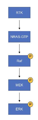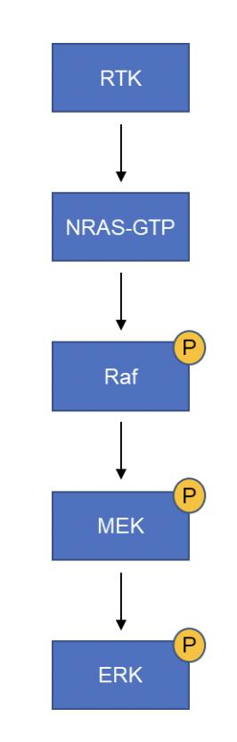 Figure S9. Schematic of the signaling pathways involving NRAS. Phosphorylation of ERK leads to gene transcription. |