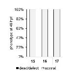 Figure S7. Toxicity assay of phosphines after treatment at 48 hpf. Concentration was 50 µM for 15 and 100 µM for 16 and 17. Embryos were treated at 24 hpf for 3 hours and then scored at 48 hpf. N = 20 for each condition. |
