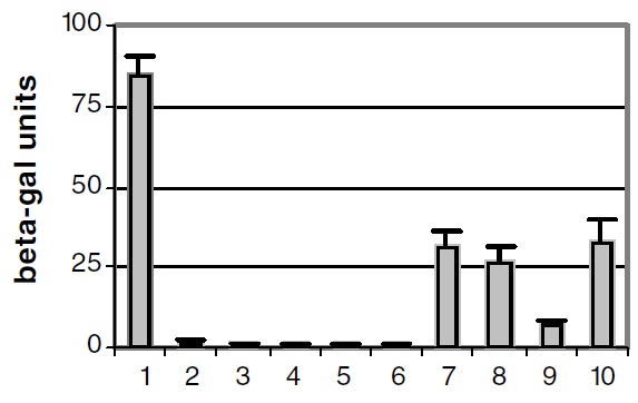 gene expression was measured by b-galactosidase assay. The data are