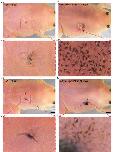 Fig. 10: Allogeneic transplantations of melanomas were conducted in mitf−/−/prkdc−/−/il2rg−/− Xenopus tropicalis, resulting in the observed migrations of transplanted melanomas in the recipient animals. a–h At day 40 post-transplantation, the transplanted nevi and metastatic melanoma were examined in mitf−/− (a, c, e, g) and mitf−/−/prkdc−/−/il2rg−/− (b, d, f, h) recipients. The enlarged views of the transplanted nevi and metastatic melanoma were portrayed in panels c and d (red dashed boxes 1 and 2) and g and h (red dashed boxes 3 and 4), respectively. Each scale bar is 1 mm. |
