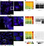 Fig. 4. Mebendazole with carboplatin synergistically inhibits cancer cell growth in a primary cilia-dependent manner. (A) HeLa, HCT116, and U2OS cells were incubated for 48 h under low-serum conditions. The primary cilium was labeled with acetylated tubulin (green and white arrows). The basal body/centrosome was labeled with γ-tubulin (red). Nuclei were labeled with DAPI (blue). HeLa cells produce regular primary cilia, whereas HCT116 and U2OS cells produce very short primary cilia and no cilia, respectively. Scale bar (left panel) = 50 µm. Scale bar (right panel) = 10 µm. (B, C) Cells were treated with the indicated combinations of carboplatin and MBZ for 48 h under low-serum conditions. Each plate contained 8 × 12 dose matrix blocks. (B) Percentage growth inhibition was calculated for each drug combination using Synergyfinder. (C) The combination index (CI) was calculated using Compusyn. The percentage-color scale and CI value scale are shown below. |