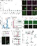 Figure 3. UBF, rDNA, and proteins containing K-blocks + E-rich regions proteins drive the formation of FC-like condensates(A) Violin plots of FC size from Xenopus oocytes monitored upon injection of 20 ng of mRNA for each of the proteins. The sizes were monitored following protein expression and leveraging the GFP tags of each of the expressed proteins; n.s. (not significant) denotes p values > 5.00e–02; **p values < 1.00e–03, ***p value < 1.00e–04.(B–D) (B) Representative images of oocyte nucleoli expressing 20 ng mRNA of GFP-tagged UBF, (C) RFP-tagged TCOF1, (D) GFP-tagged LYAR; arrowheads indicate puncta or incidental condensates85 of GFP-LYAR that form at high copy numbers.(E) Mass photometry trace of purified UBF showing raw counts (light blue histogram) and calculated distribution (dark blue line); the peak mass values indicate two populations corresponding to the masses of UBF monomers and tetramers.(F) Two-component phase boundaries of a mixture comprising rDNA and UBF. Here, green circles indicate the presence of condensates, and gray × symbols indicate a one-phase regime.(G) Confocal images of two-component mixtures consisting of rDNA (5 μM [nt]) (untagged) and UBF, LYAR, or NUCKS (fluorescently tagged) at their endogenous concentrations or at high concentrations (indicated).(H) Representative confocal image of condensates formed in three-component mixtures of rDNA (5 μM [nt]), UBF (0.05 μM), and LYAR (0.1 μM). The proteins are at their endogenous concentrations.63(I) Phase boundaries of three-component mixtures consisting of LYAR and UBF at concentrations corresponding to their endogenous concentration that contain either 1 mM rDNA (top) or 5 μM rDNA (bottom).(J) Threshold concentrations for condensation of recombinant UBF, LYAR, and NUCKS either alone (one-component, unfilled circle), with increasing concentrations of rDNA (two-component, filled triangles), or with three components (filled diamonds). In three-component mixtures, the threshold concentrations of UBF and LYAR lie below the endogenous levels of the relevant proteins (red, horizontal bar).63 Condensation was not observed for NUCKS alone or with 1 μM [nt] rDNA. Scale bars for all images, 3 μm.See also Figure S3. |