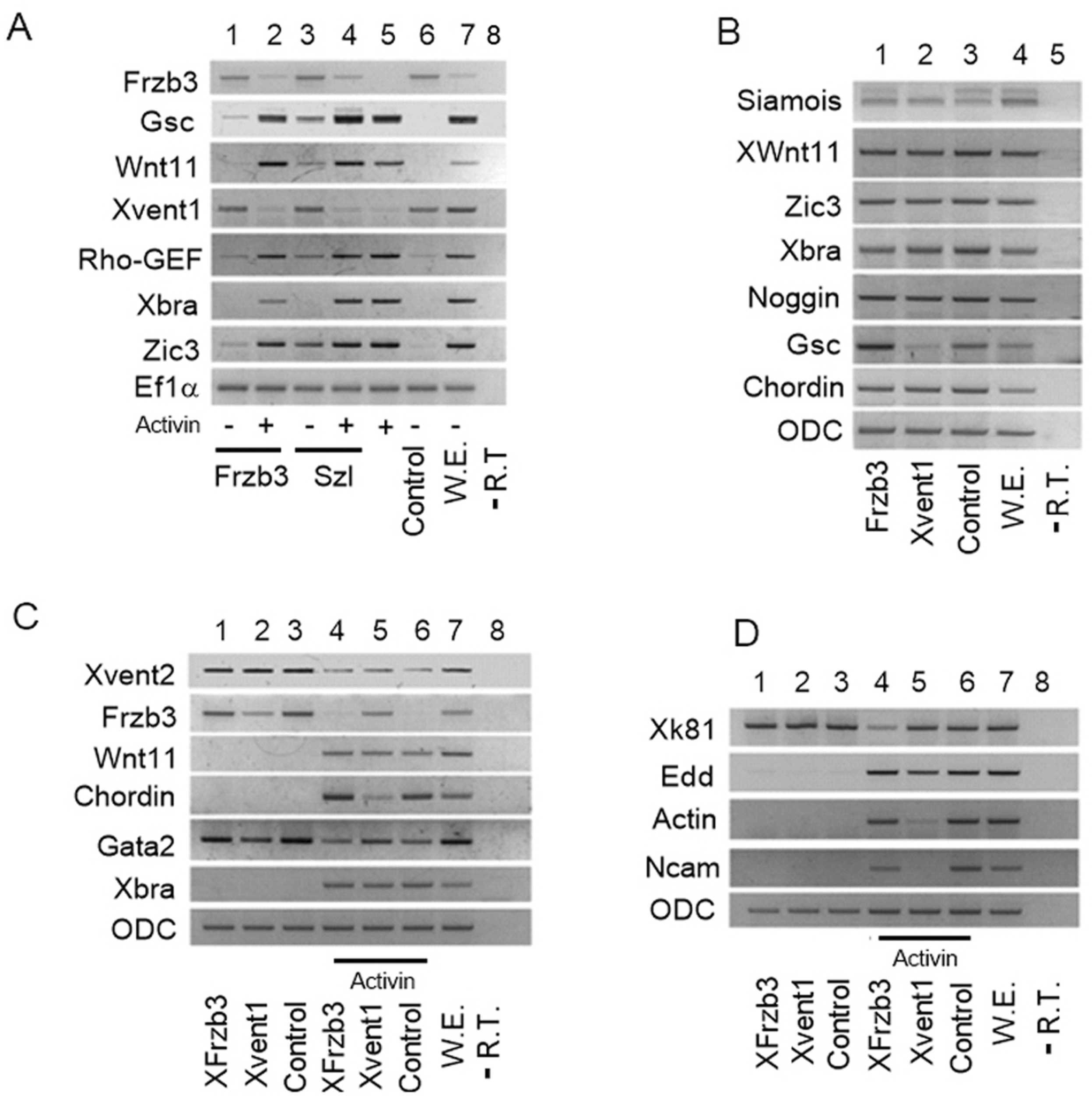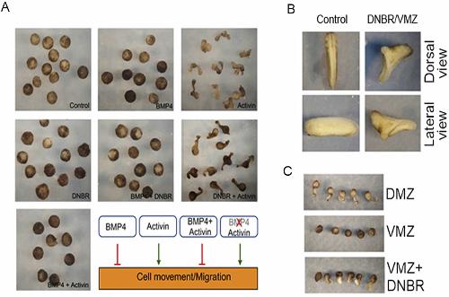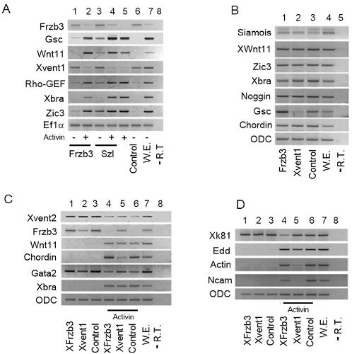 Genes referenced: arhgef1 arhgef3.2 bmp4 chrd gsc myc ncam1 nog rac1 rhoa sfrp2 sia1 smad1 smad2 szl tbxt ventx1 ventx1.2 wnt11 wnt5a wnt8a zic3